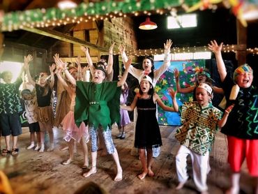 Woodstock Summerstage is a weekly theater camp running Mon-Fri from 9-3p for ages 7-14 with a final show each Friday at 2pm. Every day we play games, create characters, rehearse scenes, sing and dance, paint sets, gather & adorn costumes and props as we work together to create a show.